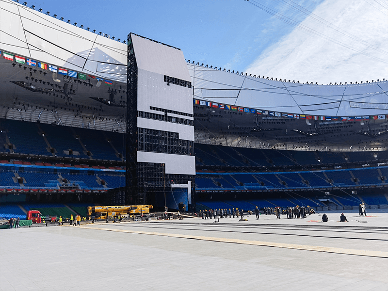 “冰瀑”設施高約60米,用鋼量1000多噸,由6000多根構件組成。作為基礎的結構裝置,后期集成系統、升降系統包括LED顯示屏等系統,都需要在此裝置上進行安裝,因此對于鋼結構構件焊縫和安裝誤差要求極為苛刻,要求穿孔率百分之百,誤差要求控制在2mm,最終我們把誤差控制在了1.5mm,用37天按時完成了加工與安裝工作,該設施在冬奧會開幕式上震驚了全世界數千萬的觀眾。