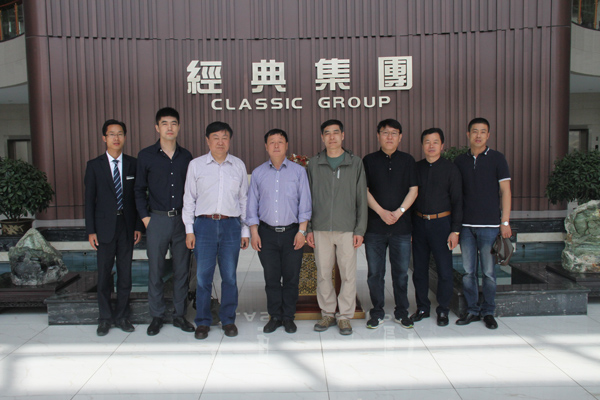 4月29日,中鐵六局領導專家一行五人到經典集團洽談考察。經典集團董事長苗樹文,總經理杜福生,副總經理鄭建康,生產總監王忠策,工會主席高建國,國際業務部經理史振華等熱情接待了來訪領導專家。