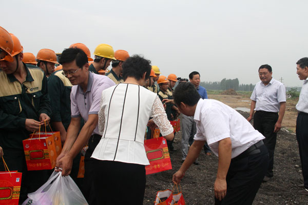 8月7日上午,兗州區委常委宣傳部長初建偉、區總工會主席王福偉率領區總工會領導班子一行來到經典醫療器械項目工程現場,看望了辛苦奮戰在一線的集團職工,把一批防暑降溫慰問品親自交到職工手中,深切表達了對一線職工的慰問與關懷。新兗鎮黨委書記張建芬,經典集團總經理杜福生等領導陪同慰問。