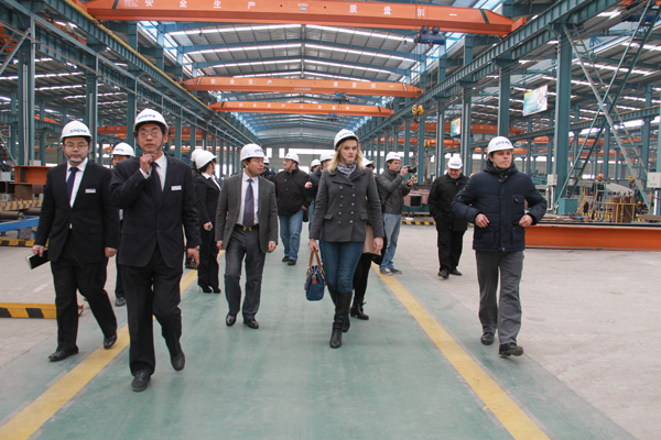 俄羅斯考察團首先參觀了經典集團11萬平方米的輕鋼重鋼生產車間,就鋼結構生產工藝、生產流程、技術設備、車間管理等方面與經典集團高層進行了交流。隨后考察團參觀了經典集團文化館、工程中心、設計院和技術部,進一步了解了經典集團企業文化、產學研合作、工程設計、技術分解和技術創新等有關情況。
