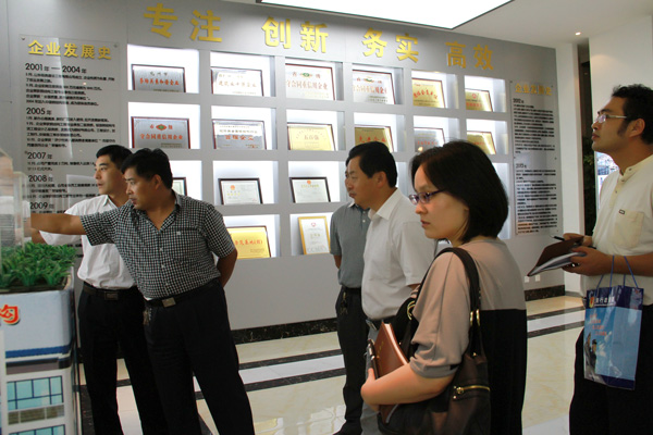 調研團一行不顧勞途奔波,到達公司后,首先參觀了集團公司營銷中心、項目管理中心集團文化館,在文化館,集團董事長苗樹文簡單介紹了公司的發展歷程、產品結構、行業特性以及公司的現狀,隨后調研團領導深入生產一線,了解車間加工能力生產進度,具體詢問了員工的工作環境及生活狀況。