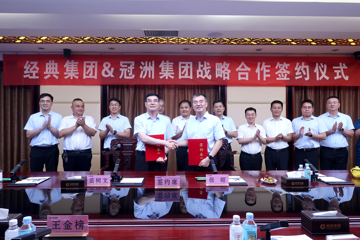 6月13日上午,經(jīng)典重工集團(tuán)股份有限公司與山東冠洲股份有限公司簽訂戰(zhàn)略合作協(xié)議。經(jīng)典集團(tuán)董事會(huì)主席苗樹(shù)文、冠洲董事長(zhǎng)張昭代表雙方簽訂戰(zhàn)略合作協(xié)議并講話。經(jīng)典集團(tuán)副總經(jīng)理鄭建康、王金榜、張爭(zhēng),冠洲宋總出席簽約儀式。